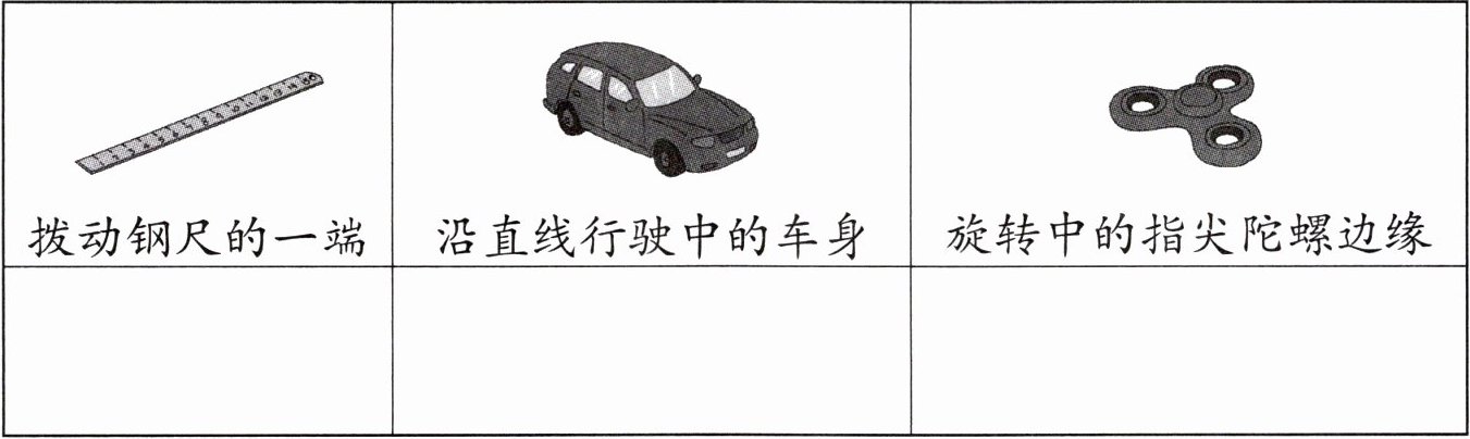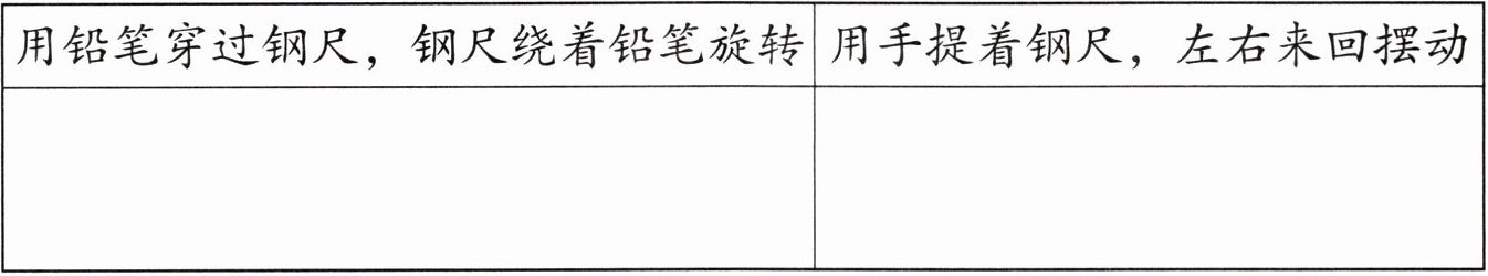 (2)用两种不同的方法让钢尺运动起来,画一画钢尺的运动路线。