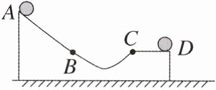 小秋在研究过山车时,设计了右图所示的轨道模型,小球从 A 点自由滚落,依次经过 B 点、C 点和 D 点。