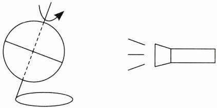 3. 用手电筒模拟太阳,拨动地球模型(如下右图)。读图回答下列问题。(15分)