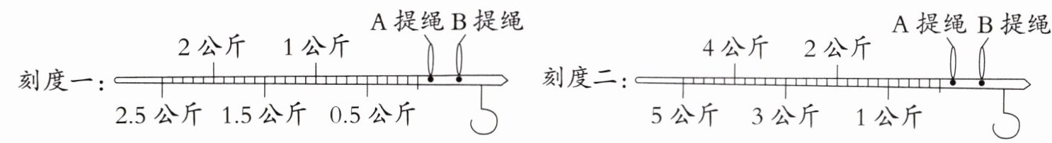 |刻度一:|2公斤|1公斤|A提绳|B提绳|