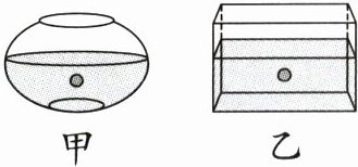 9. 贤贤在甲、乙两个透明的鱼缸中分别放了一个大小相同的小球。从侧面观察,哪个鱼缸中的球看起来更大呢?( )