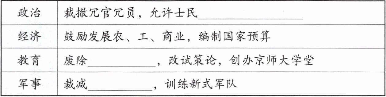 5. 历史影响:中国近代第一次思想解放运动,也是______改良运动。变法最后以失败告终,但促进了______和民族意识的觉醒,对近代教育和报刊事业的发展也产生长远影响。