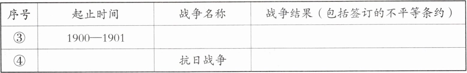 |③|1900—1901|八国联军侵华战争|中国战败,签订《辛丑条约》|