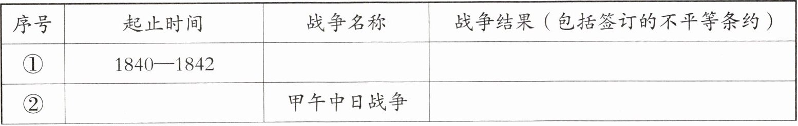 |②|1894—1895|甲午中日战争|中国战败,签订《马关条约》|