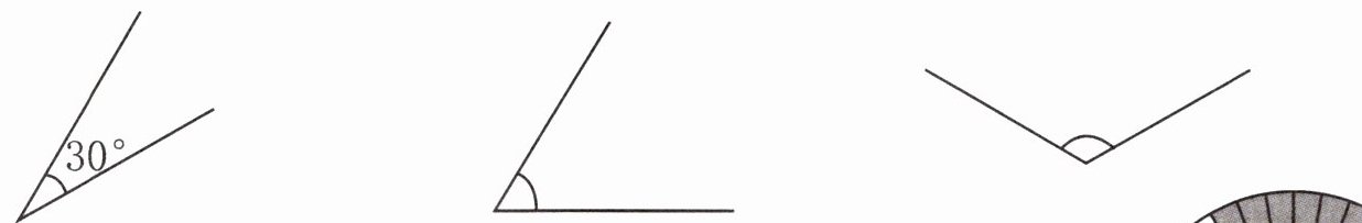 2. 根据下图第一个角的度数,估一估右边两个角的度数。