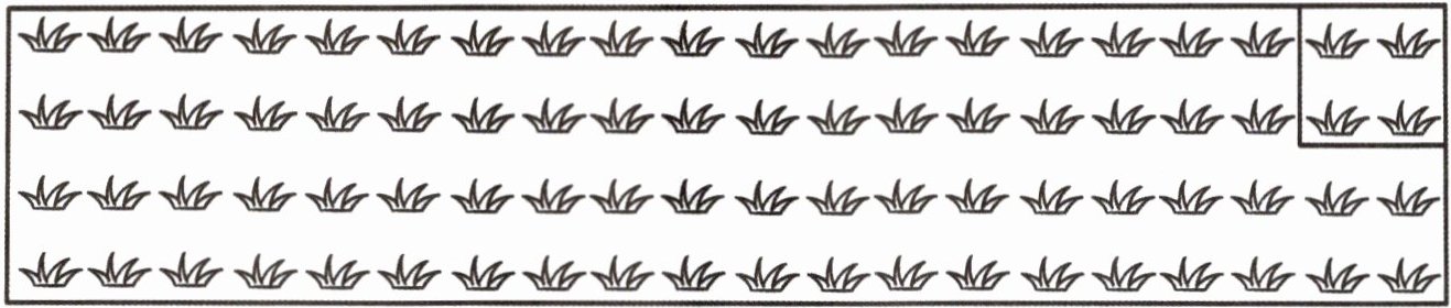3. 下图是一块长方形草地,图中的方框表示2平方米。估一估,这块草地的面积大约是( )平方米。