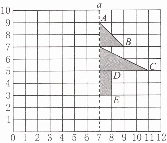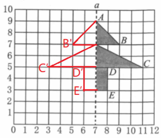 (2) 以直线a为对称轴,描出点B,C,D,E的对称点$B'$,$C'$,$D'$,$E'$,并用数对表示。
