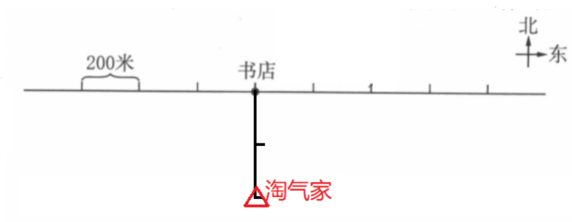 4. 书店南面400米处是淘气家,请用“△”标出淘气家的位置。