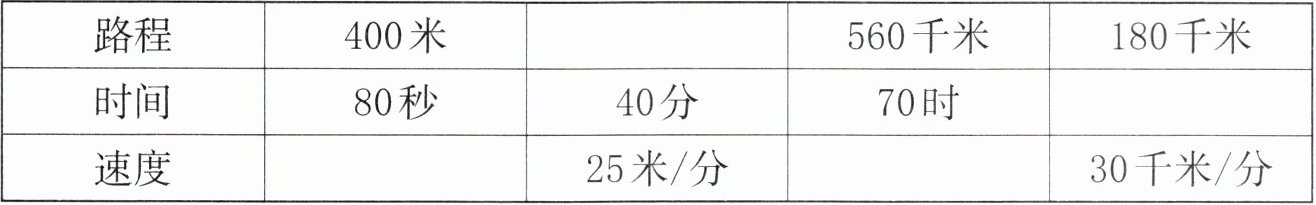 | 路程 | 400米 | | 560千米 | 180千米 |