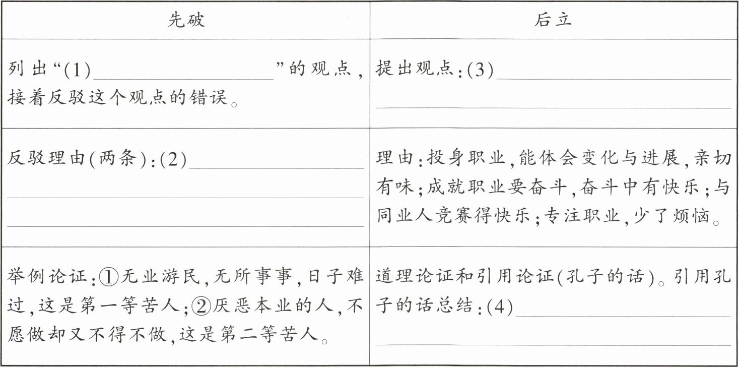 1. 选文采用“先破后立”的方法,请梳理论证思路,完成表格填空。