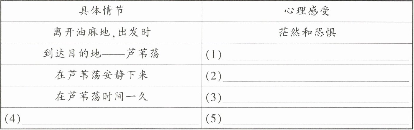 (2)仿佛只要稍微慢下一点儿来,他也会像他的儿子一样 地对前方感到 和恐惧,从而也会打消离开油麻地的主意。