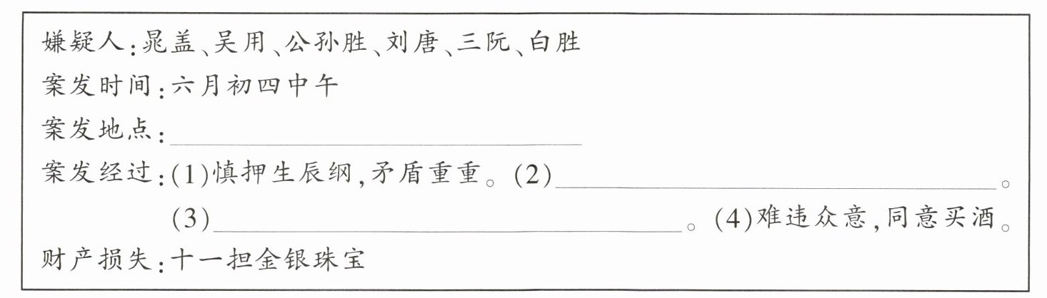 3. 吴用团队在作案过程中分别使用了三十六计中的哪些计策? 请分析具体情节,选择正确的计策。(填序号)