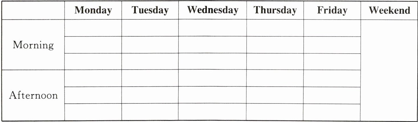 三、请你制作一张自己喜欢的课程表,并和你的好朋友一起讨论一下你的课程表吧!