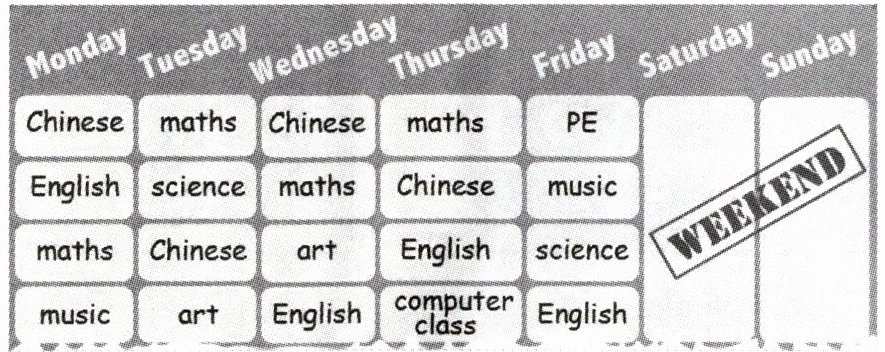 ②A: I have PE, music, science and ... B: Is it Monday/Friday?