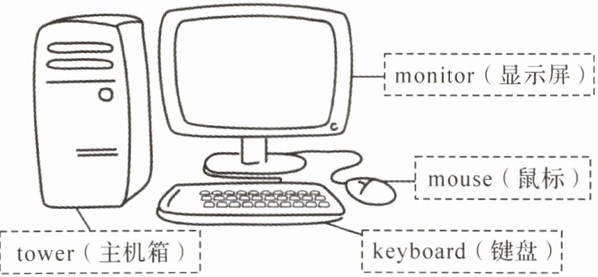 The computer is very useful(有用的). It can do many kinds of work. A computer is made up of many parts,including a monitor,a mouse,a keyboard,a tower,etc.