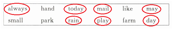 一、圈出与 rainbow 的画线部分有相同发音的单词。