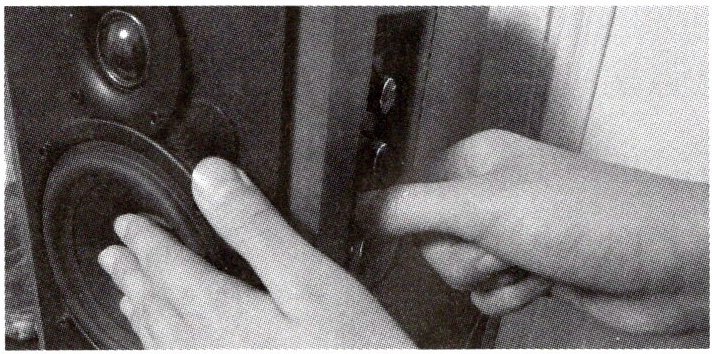 (2)一只手慢慢转动声音调节旋钮,另一只手轻轻放在音响喇叭处,感受喇叭振动幅度。