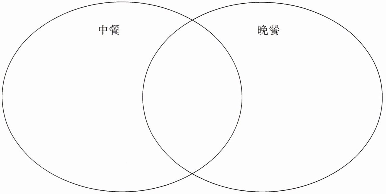 (1)把爸爸或妈妈一天里中餐和晚餐所吃的食物的名称填入下图中。