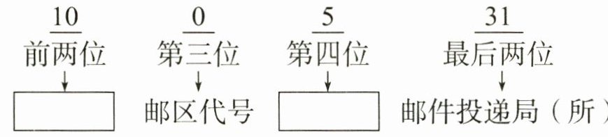 (1)邮政编码由( )位数字组成,分为四部分如图所示。(填序号)