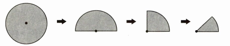 4. 折纸不仅是一种艺术,还能锻炼空间想象力。把一张圆形纸对折三次,折出的角各是多少度?分别是什么角?