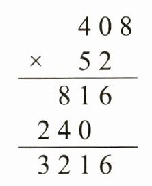 $\begin{array}{r}408\\×\ 52\\\hline816\\240\\\hline3216\end{array} $ ( ) 改正: