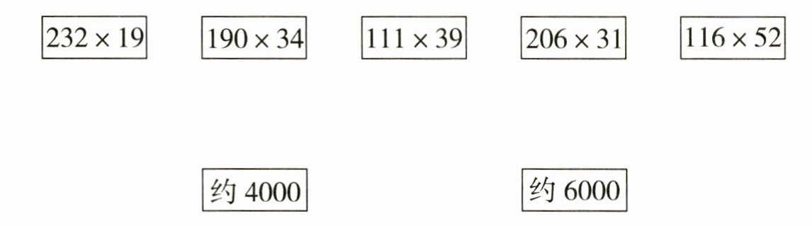 $\begin{array}{c}\boxed{232×19} \quad \boxed{190×34} \quad \boxed{111×39} \quad \boxed{206×31} \quad \boxed{116×52} \\\\\boxed{约4000} \quad \boxed{约6000}\end{array} $