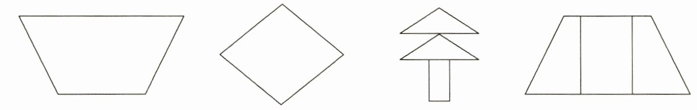 第四个图形:在梯形分割后的两个图形的上下底描出一组平行线(或分割线,分割线与上下底也平行,任选一组即可)。