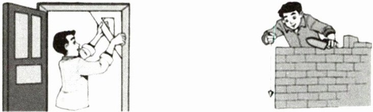 1. 左图:用直线描出门框的边和门上横梁的边,这两条直线相交成直角,是一组垂线。