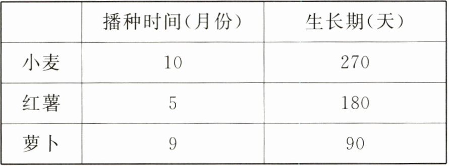 3. 常见农作物在某地区的播种时间及生长期如下表。