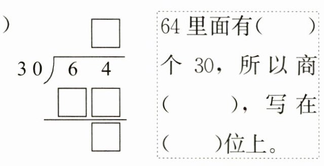 64 里面有( )个 30,所以商( ),写在( )位上。