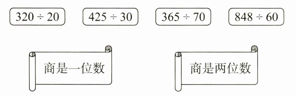 $ \begin{array} { | c | c | c | c | } \hline 3 2 0 ÷ 2 0 & 4 2 5 ÷ 3 0 & 3 6 5 ÷ 7 0 & 8 4 8 ÷ 6 0 \\ \hline \end{array}\\ \hline $