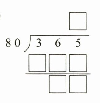 被除数的前两位不够除,看前三位,$80×$( )接近 365 且小于 365,所以商( )。