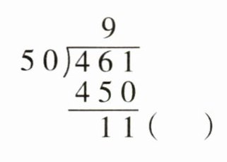 $ \begin{array} { r } { 9 } \\ { 5 0 \longdiv { 4 6 1 } } \\ { 4 5 0 } \\ \hline { 1 1 } \end{array} $$ ( ) 改正:$ \begin{array} { r } { 7 } \\ { 6 0 \longdiv { 4 8 6 } } \\ { 4 2 0 } \\ \hline { 6 6 } \end{array} $$ ( ) 改正: