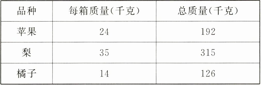 |品种|每箱质量(千克)|总质量(千克)|
