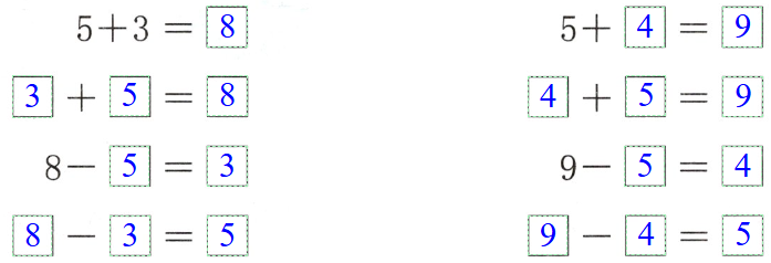 2 + 6 = 9 - 3 = 7 - 0 = 8 - 5 =