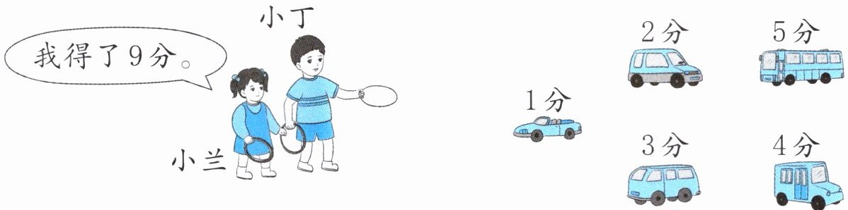 (1) 小丁和小兰玩套圈游戏,每人套了2个圈。小兰套中了哪两个?连一连。