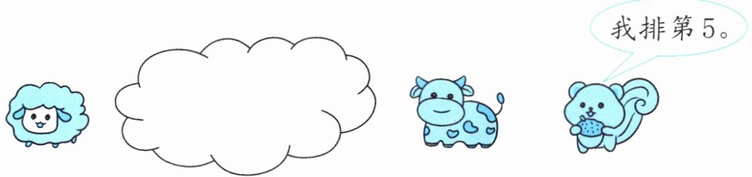 排第( ),它的左边有( )只动物,右边有( )只动物。