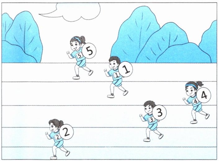 3. 如右图,运动会上,一共有5个人参加跑步比赛。