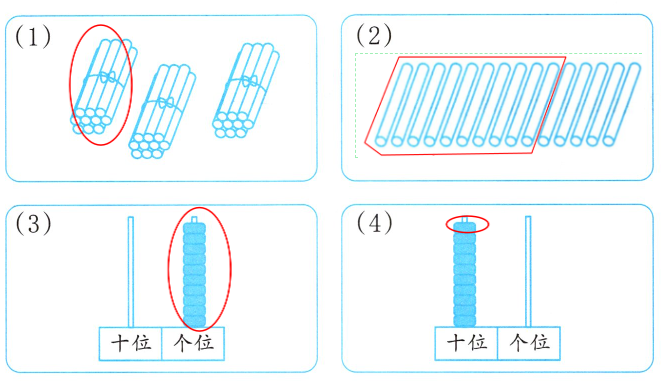 先圈出10个桃子,剩下的桃子数量为5个,所以是1个十和5个一。