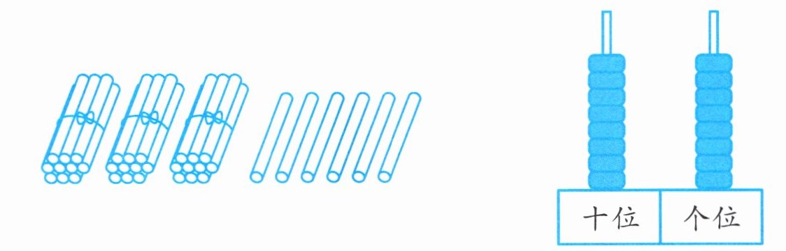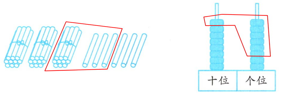 (1)在图中圈出1整捆小棒(10根)和3根单独的小棒,表示13。