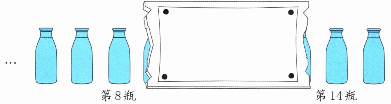 可以用数数的方法,从第8瓶开始往后数,第9瓶、第10瓶、第11瓶、第12瓶、第13瓶,数到第14瓶前停止,数了5个数,但是要除去第8瓶和第14瓶这两瓶,所以第8瓶和第14瓶之间有14 - 8 - 1 = 5瓶饮料。