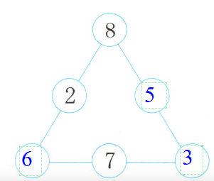 *6. 下图中,每条线上的三个数相加,和都等于16,请把空格填写完整。