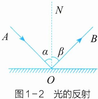 激光束路径如图1-2所示,图中O点为入射点,经过入射点O并垂直于反射面的直线ON叫作法线。AO为入射光线,OB为反射光线,入射光线AO与法线ON的夹角α叫作入射角,反射光线OB与法线ON的夹角β叫作反射角。