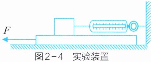 3. 由于在实验中很难使木块做匀速直线运动,有人设计了如图2-4所示的实验装置。当拉动长木板时,不论是否做匀速运动,都能从测力计示数上获知滑动摩擦力的大小。试分析其原因。