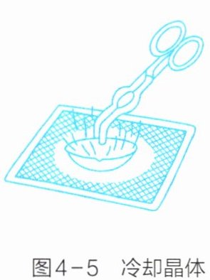 (3)如图4-5,手握坩埚钳手柄,将钳口对准蒸发皿边缘并夹紧,慢慢移至陶土网上进行冷却。