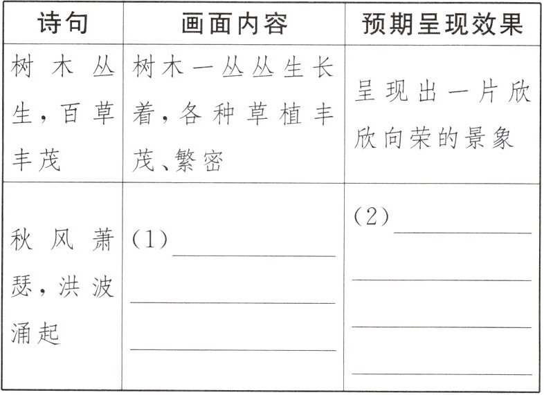 (1)【示例】萧瑟的秋风中,大海波澜壮阔、汹涌起伏