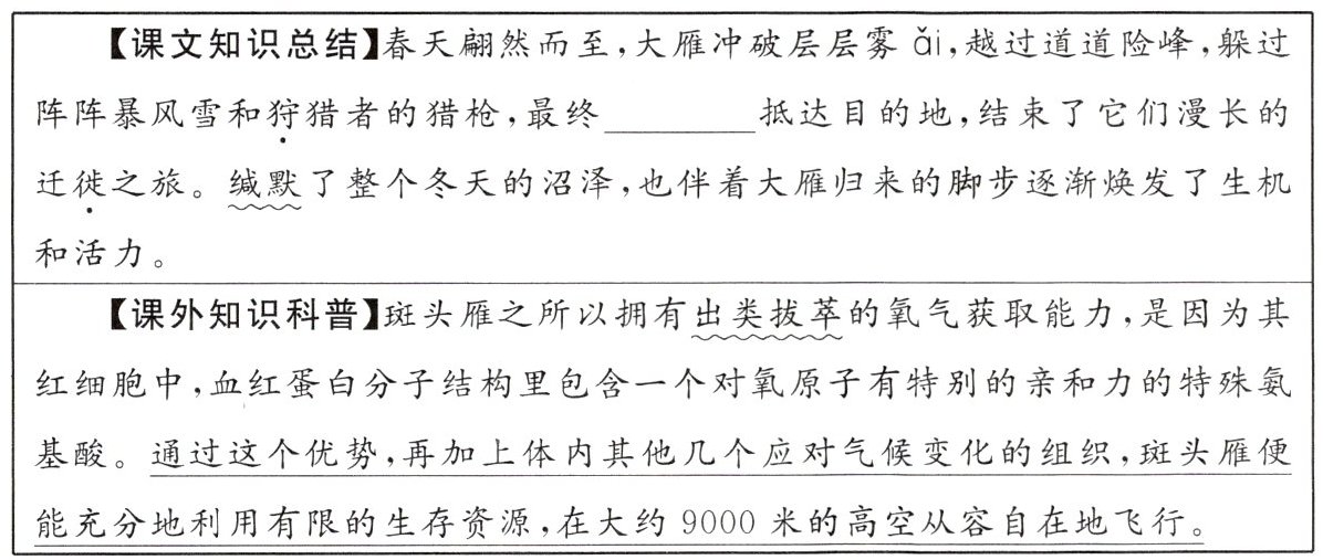 学完《大雁归来》后,班级开展“大雁知识知多少”系列活动。下面是小桂同学拟分享的活动材料,请你认真阅读后完成题目。