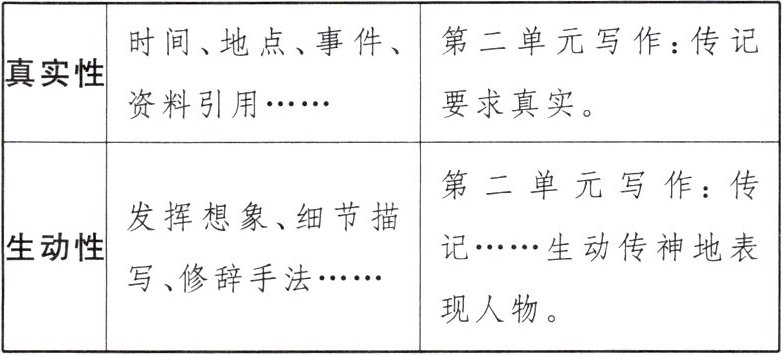 8. 【写作特点】请借助第二单元写作,结合第⑨段画线句,分析传记作品真实性和生动性的特点。(4分)