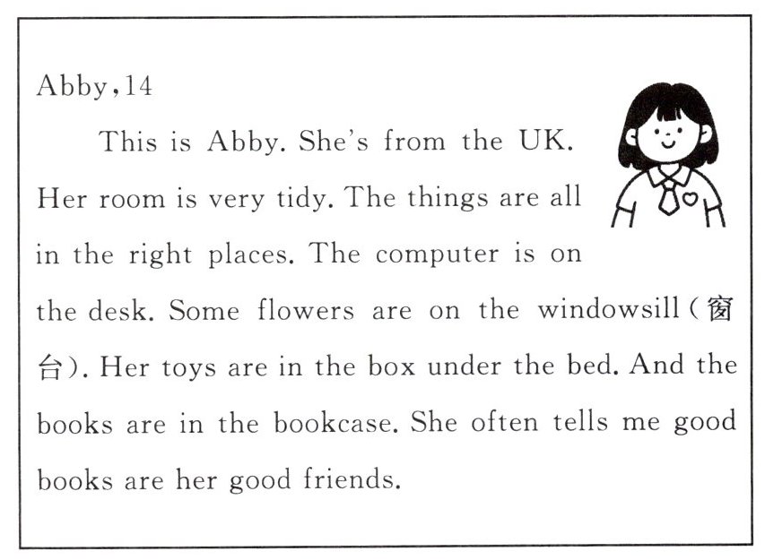 )4. 新考向 信息匹配 Where can we find these things in Abby's room?①flowers ②computer ③toys ④books