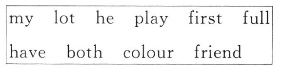 二、11. full 12. first 13. friends 14. my 15. has 16. both 17. colour 18. lot 19. His 20. play